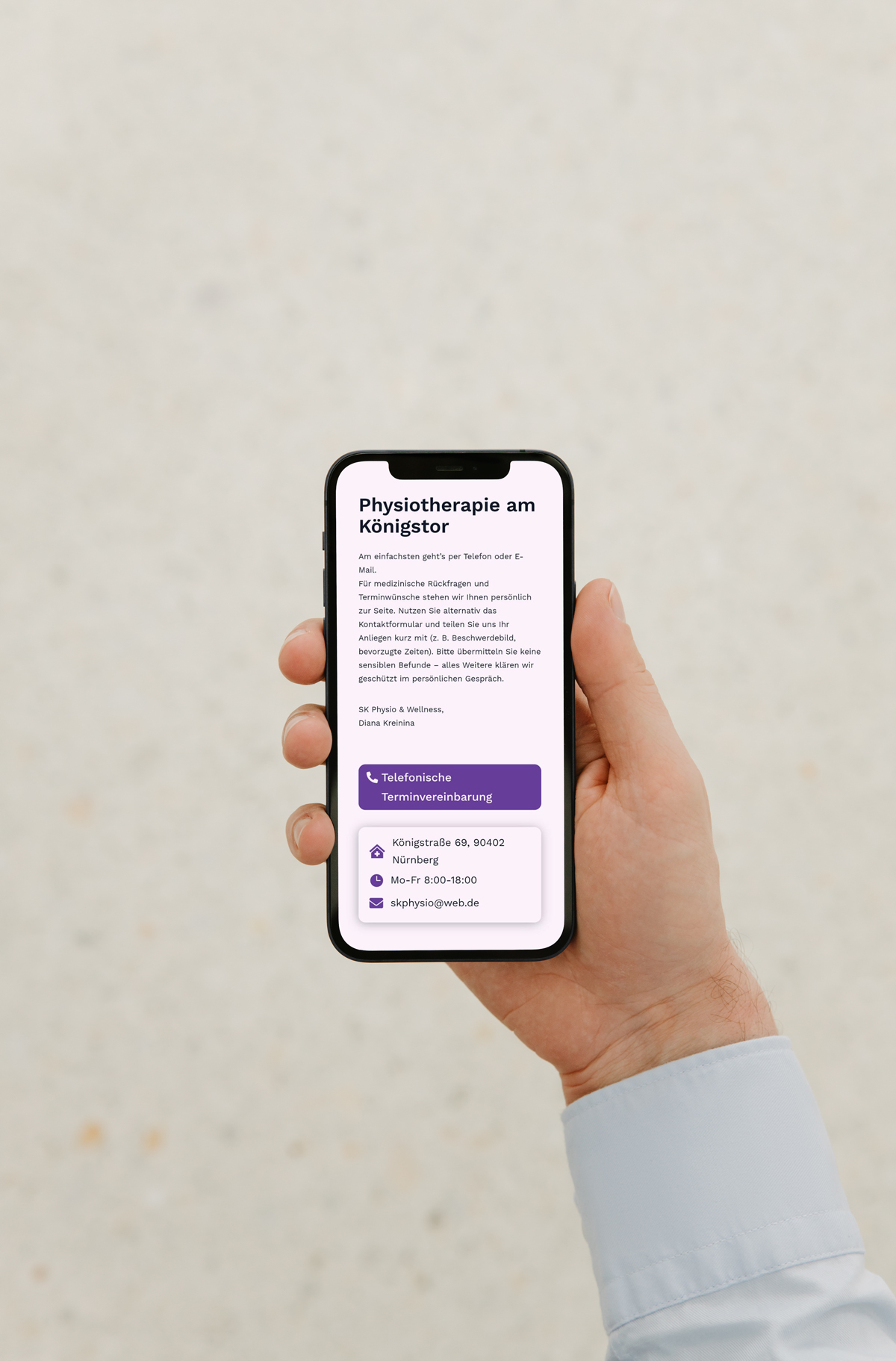 Durch Eure professionelle Begleitung, kreative Ideen und liebevolle Detailarbeit ist ein authentischer, moderner und einladender Gesamtauftritt entstanden. Ihr habt es geschafft, unsere drei Praxen unter einem Dach zu vereinen.“